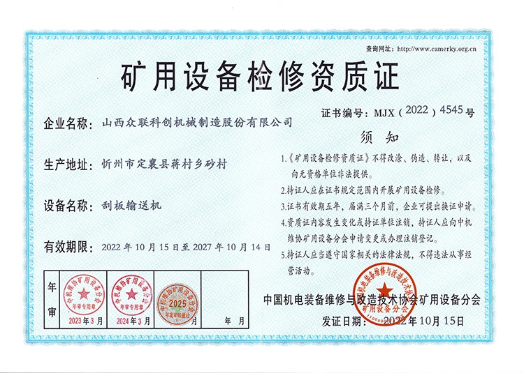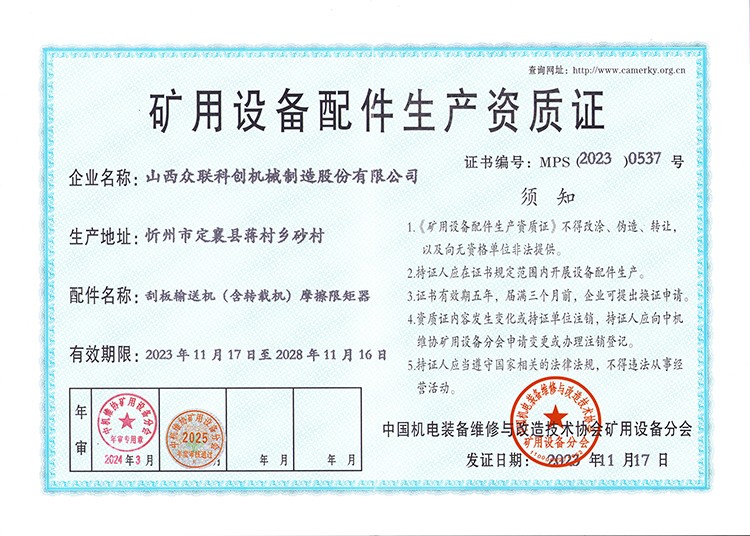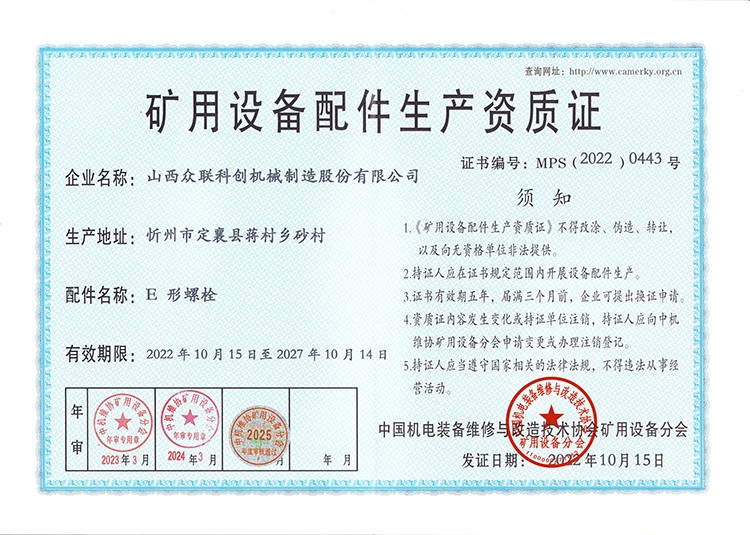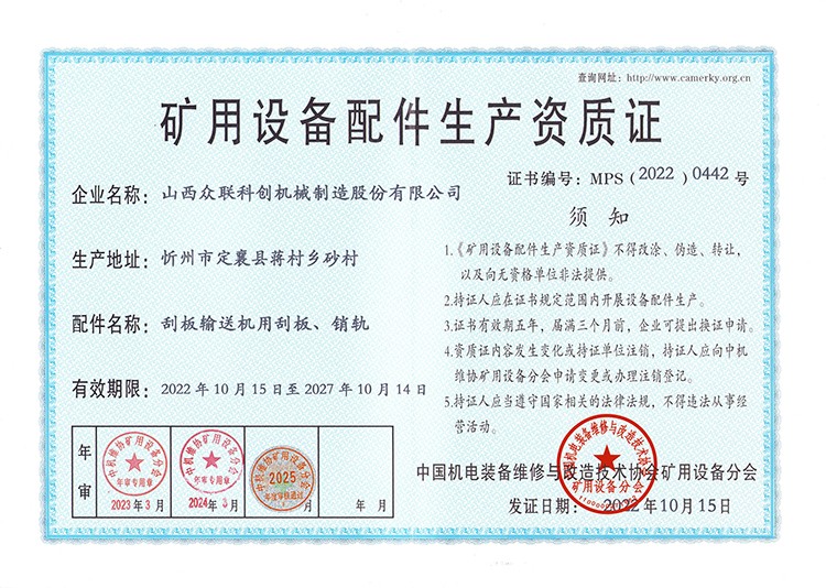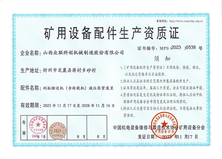 矿用设备配件生产资质证